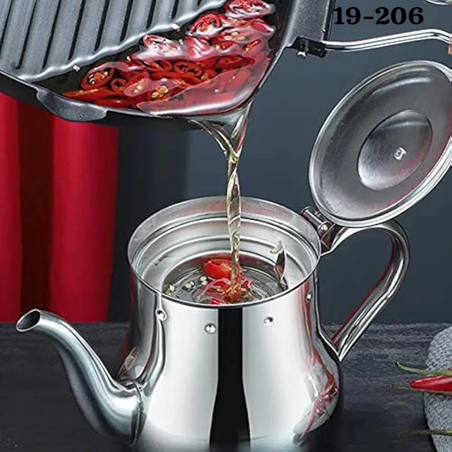 إبريق معدني مع مسكة ومصفاية – لتصفية الزيت بسهولة
